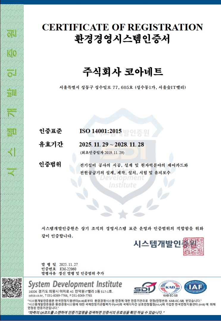 ISO14001:2015 (환경경영체제 인증서)