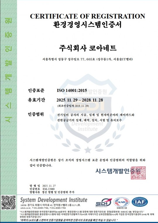 ISO14001:2015 (환경경영체제 인증서)