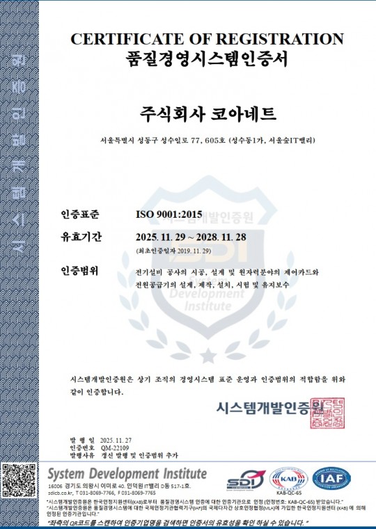 ISO9001:2015(품질경영체제 인증서)